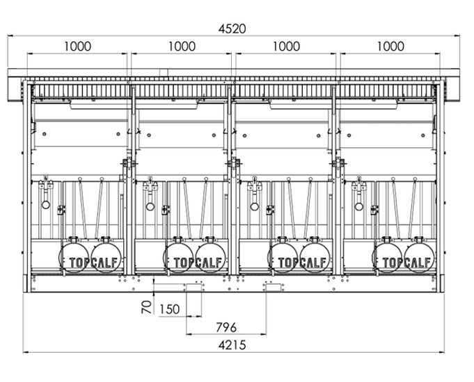 De Topcalf Quattro Kalverhut is een verplaatsbare eenlingboxenstal. Met de uitneembare tussenwanden maak je eenvoudig een groepje van twee of vier, waardoor de kalveren samen opgroeien en hun sociale gedrag ontwikkelen. De constructie, bestaande uit gegalvaniseerd staalwerk met kunststof (uitneembare) wanden, uitneembare roostervloeren en een geïsoleerd sandwichpanelen dak, is eenvoudig te reinigen en biedt een lange levensduur. Met een binnenwerks afmeting van (LxB): 1625×1000 mm per ligplaats voldoet de kalverhut aan de huidige Nederlandse regelgeving.