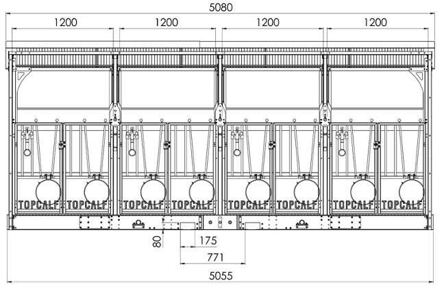 De Topcalf Quattro XXL EasyClean is een verplaatsbare eenlingboxenstal. Met de uitneembare tussenwanden maak je eenvoudig een groepje van twee of vier, waardoor de kalveren samen opgroeien en hun sociale gedrag ontwikkelen. De constructie, bestaande uit gegalvaniseerd staalwerk met kunststof (uitneembare) wanden, uitneembare roostervloeren en een geïsoleerd sandwichpanelen dak, is eenvoudig te reinigen en biedt een lange levensduur. Met een binnenwerks afmeting van (LxB): 1825×1200 mm per ligplaats voldoet de kalverhut aan de huidige Nederlandse regelgeving.